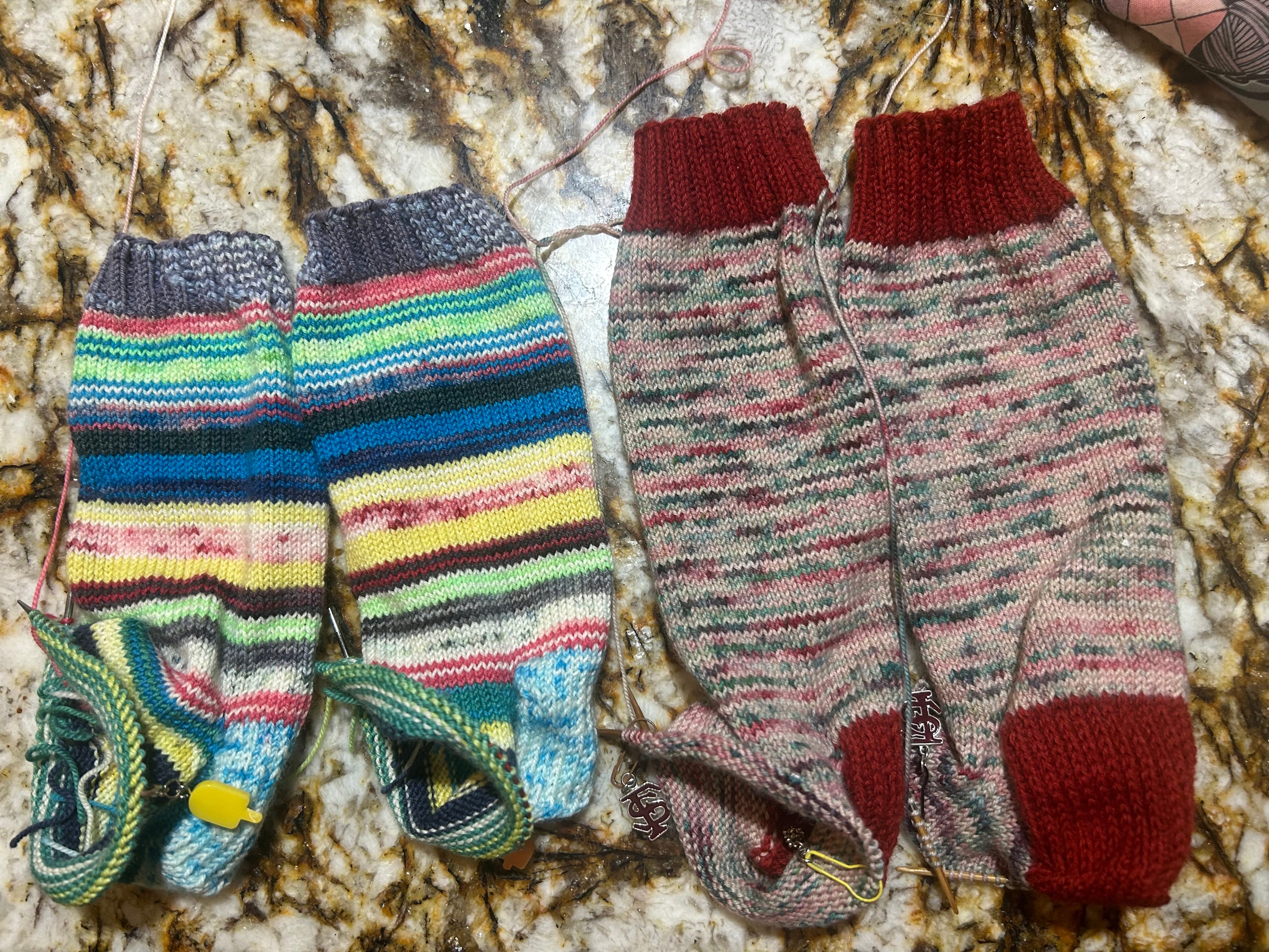 (This pic doesn’t reflect where I am with the socks now. I was too lazy to turn them right side out and photograph them in their current state🙂).